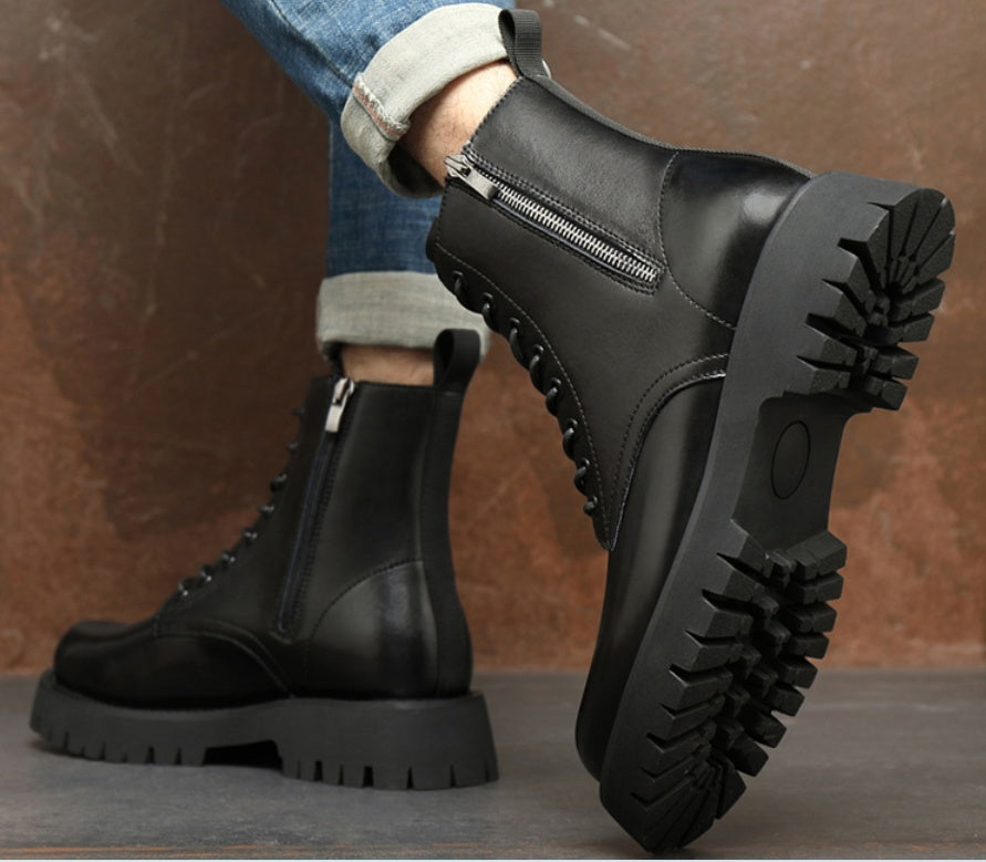Add High Pile Platform Really Leather Shoes Men Zipper Boots