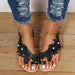 Lace Sandals Bohemia Beach Shoes Flowers Ankle Strap Flat Shoes Summer